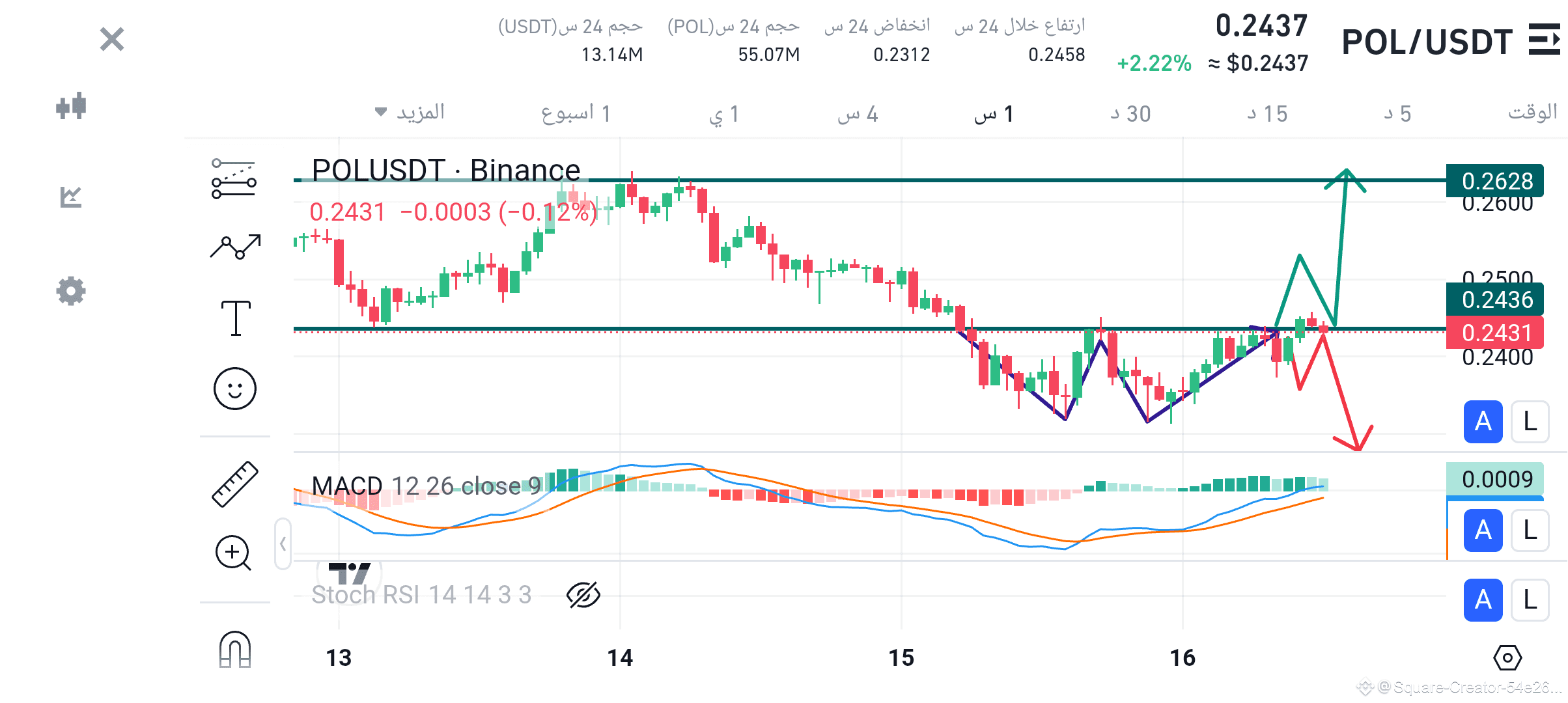 تحليل زوج POL/USDT على الإطار الزمني ساعة واحدة من الصورة المرفقة:
