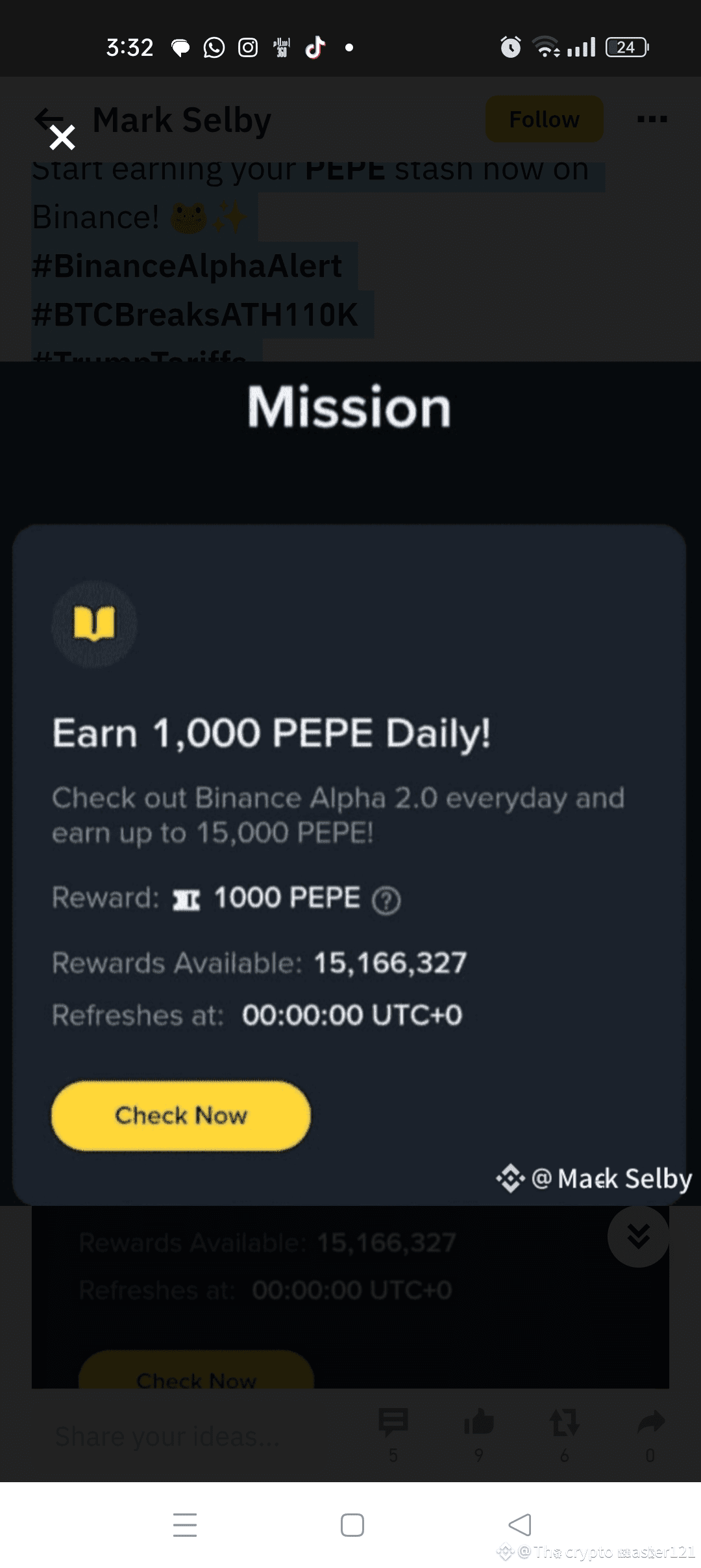 #BinanceAlpha #EarnPEPE #CryptoRewards" #AlphaMission
