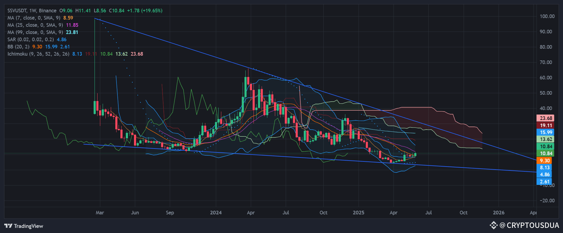 🔴 Сопротивление: $11.85 (MA25), $13.62 (граница облака Ишимоку), ключевое — $23.81 (MA99).