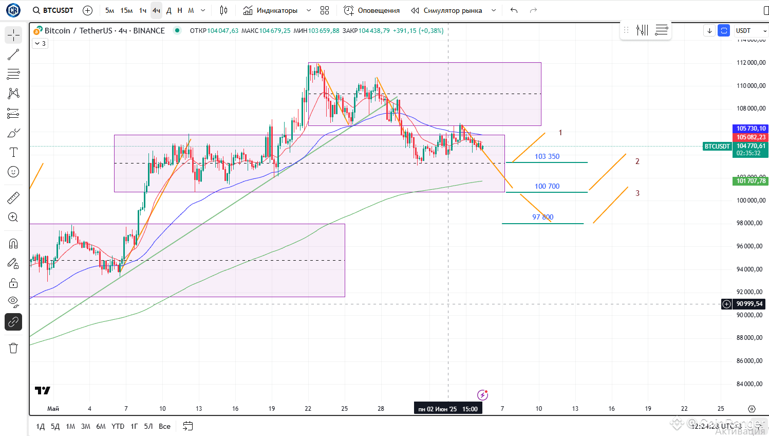 3️⃣Мощный ход вниз до 97 800 - скорее экстремальный вариант. Я бы отвел под него какое-нибудь внезапное ухудшение всего. Немного посмотрев на дедушку Трампа не стоит совсем исключать из рассмотрения такой сценарий.