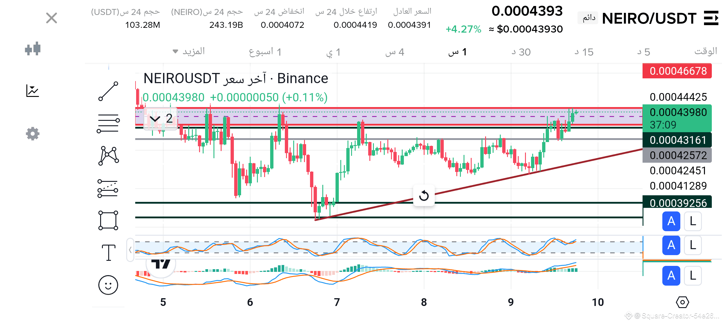 * السعر اخترق مستوى مقاومة قوي عند `0.00043161` واستقر فوقه.