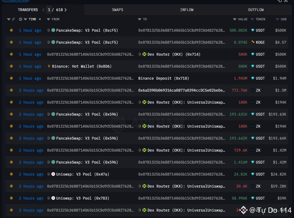 20:31 - 20:58: Hoán đổi 36,814 KOGE (~2.26 triệu USD) sang ZKJ.