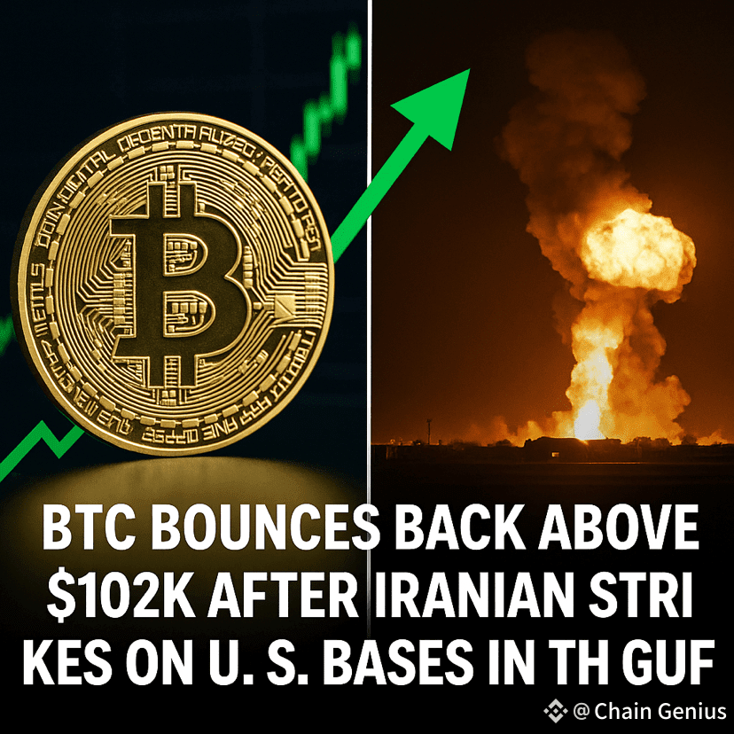 In a dramatic turn of events, Bitcoin ($BTC ) has surged back above the $102,000 mark following reports of Iranian strikes on U.S. military bases in the Gulf region late Sunday night. The geopolitical shockwave rattled traditional markets but sparked renewed interest in cryptocurrencies as investors sought safe-haven assets amid escalating tensions.