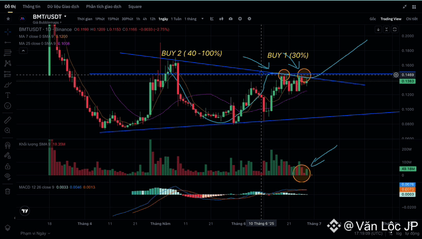 1. ✅ Nếu $BMT vượt điểm mua 1 (Buy 1) mà mình đã đánh dấu: