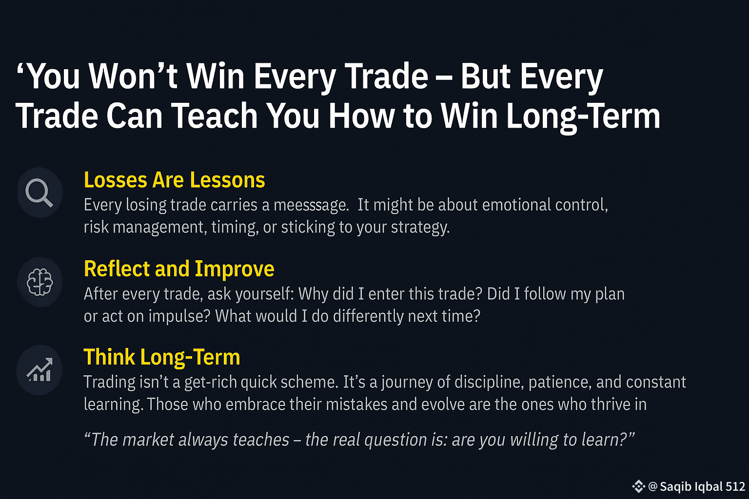 Every losing trade carries a message. It might be about emotional control, risk management, timing, or sticking to your strategy. If you ignore the lesson, you lose twice — the money and the opportunity to grow.