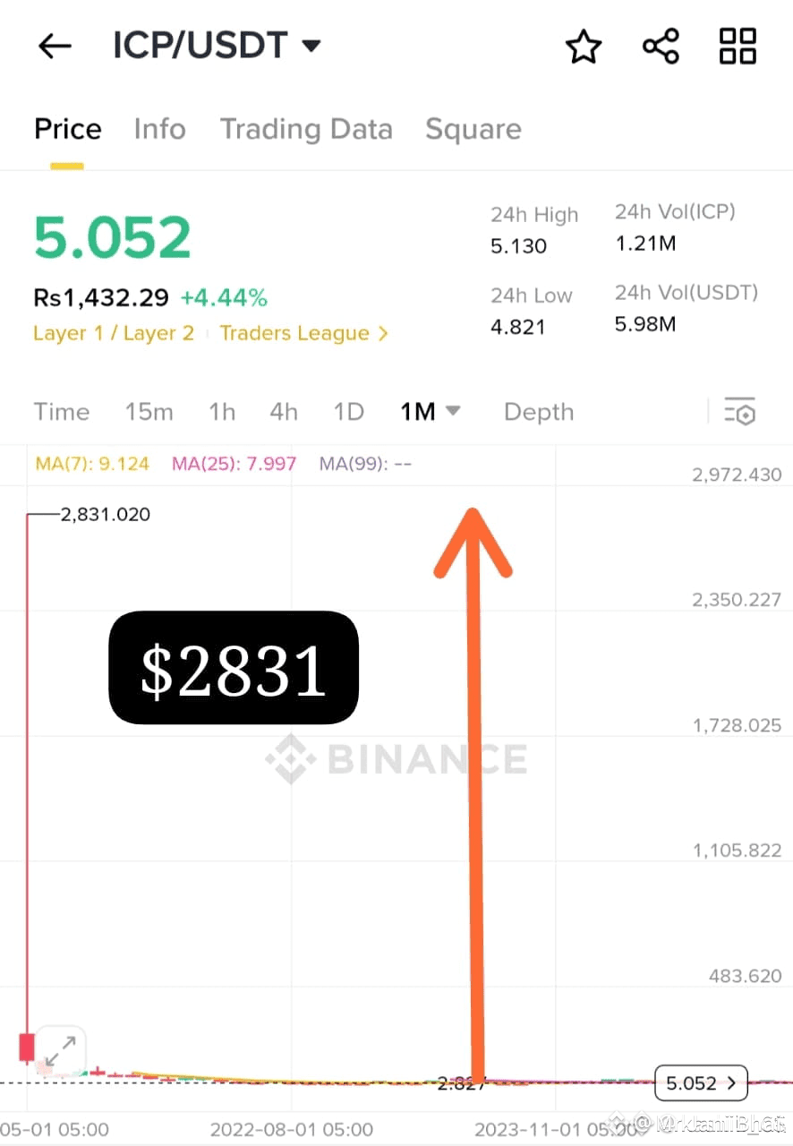 The ICP/USDT chart on Binance just raised eyebrows — showing an unusual spike to $2831, while the current price remains around $5.05. Traders are left wondering: was this a technical glitch or a flash of what’s possible?