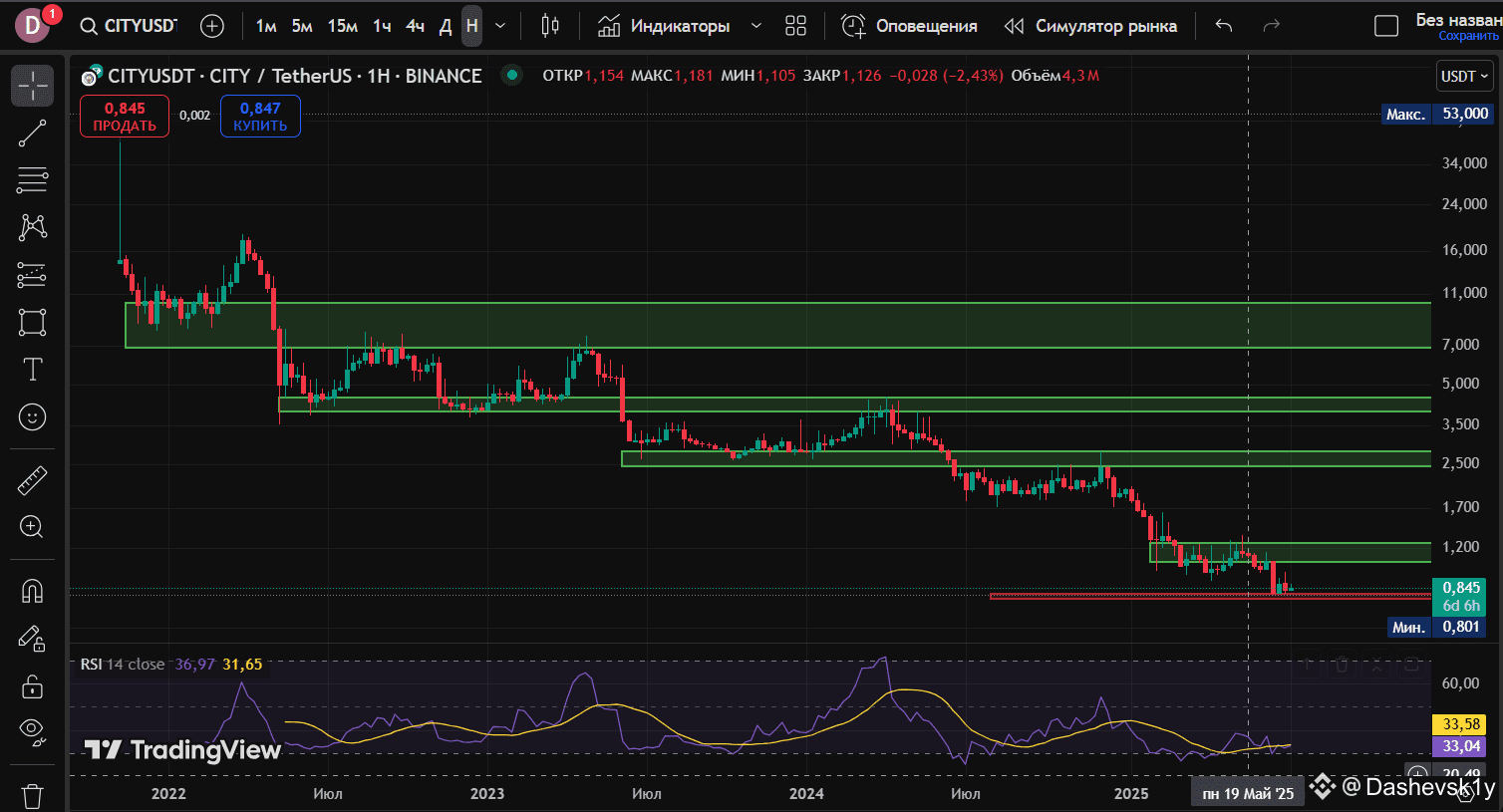 Падение: –96–97 % от пика к дну → интересная база для возможного импульса.