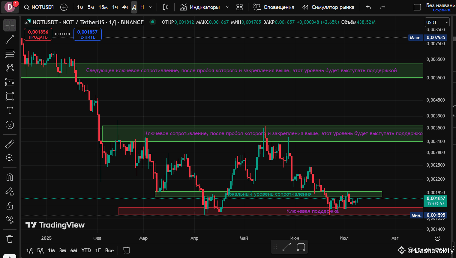 📌 Пример: Notcoin (NOT/USDT) — ключевые уровни