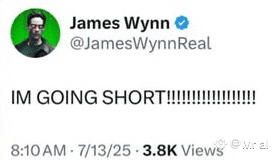 After experiencing consecutive losses totaling hundreds of billions, James Wynn made one final post: "IM GOING SHORT" on July 13, 2025. Shortly thereafter, he deactivated his @JamesWynnReal account. His on-chain wallet now holds only $10,176, marking a quiet end for one of the most sensational traders of the year.