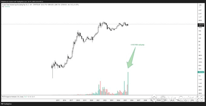 Những đợt tăng vọt về khối lượng như vậy thường báo hiệu hành động giá đáng kể sắp diễn ra. Nó phản ánh áp lực mua mạnh từ cả tổ chức lẫn nhà đầu tư cá nhân, đồng thời trùng khớp với gia tăng thống trị của altcoin. Dữ liệu lịch sử cho thấy các đợt tăng giá altcoin thường theo sau những giai đoạn mở rộng do khối lượng dẫn dắt.