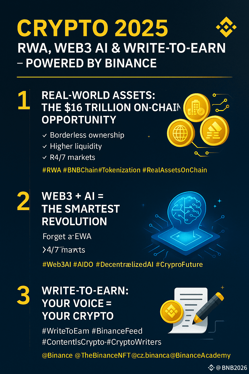 🚀 Crypto 2025: The Rise of RWA, Web3 AI & Write-to-Earn – Powered by Binance