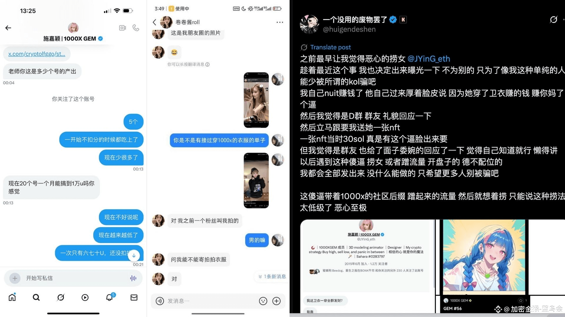 今天吃个瓜,在推上小有名气的女KOL 施嘉颖 被踢爆其实是男扮女装的抠脚大汉!这个号称“1000X GEM成员”的施嘉颖,平时在推特上晒精致美女自拍、分享投资心得,还与各大交易所频繁互动,俨然一副 币圈天菜的形象。讽刺的是,有人挖出照片正主来自小红书和抖音,背后极有可能是个水下营销号集团。