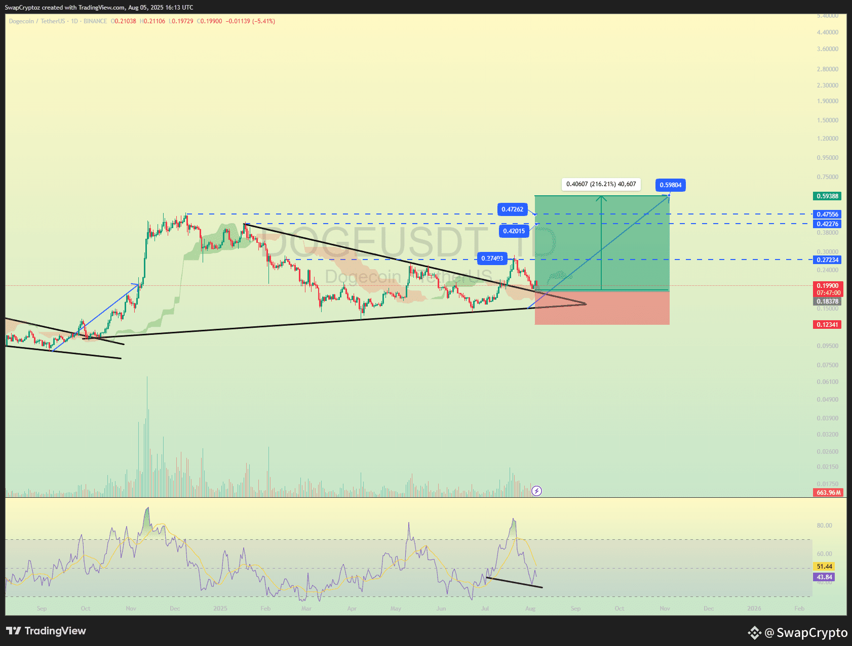 Dogecoin is bouncing off major support and forming a strong bullish setup within a symmetrical triangle. RSI shows a bullish divergence and the price is reacting well to the trendline — signaling a potential reversal. Volume is picking up, and momentum is building. This could be the early phase of a major breakout, just like its previous rally.