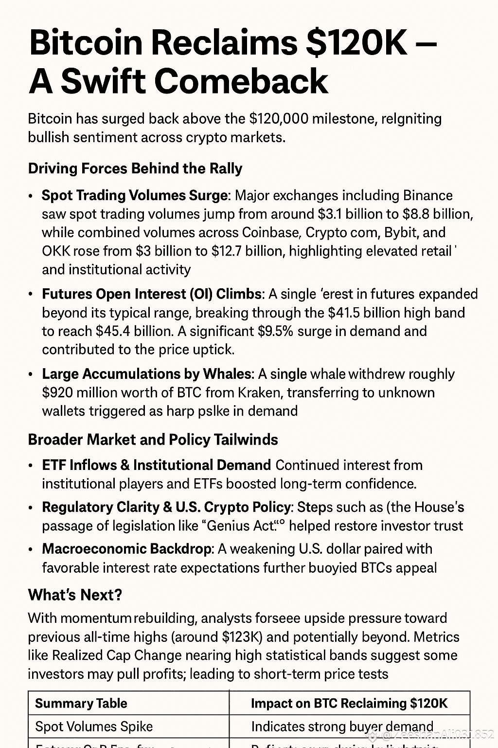 Bitcoin’s re-ascension to the $120K level is supported by robust market activity—from retail and institutional flows to whale accumulation and clearer policy signals. The interplay of these factors suggests renewed confidence and potential for further upside—but with typical cryptocurrency volatility, caution remains key.