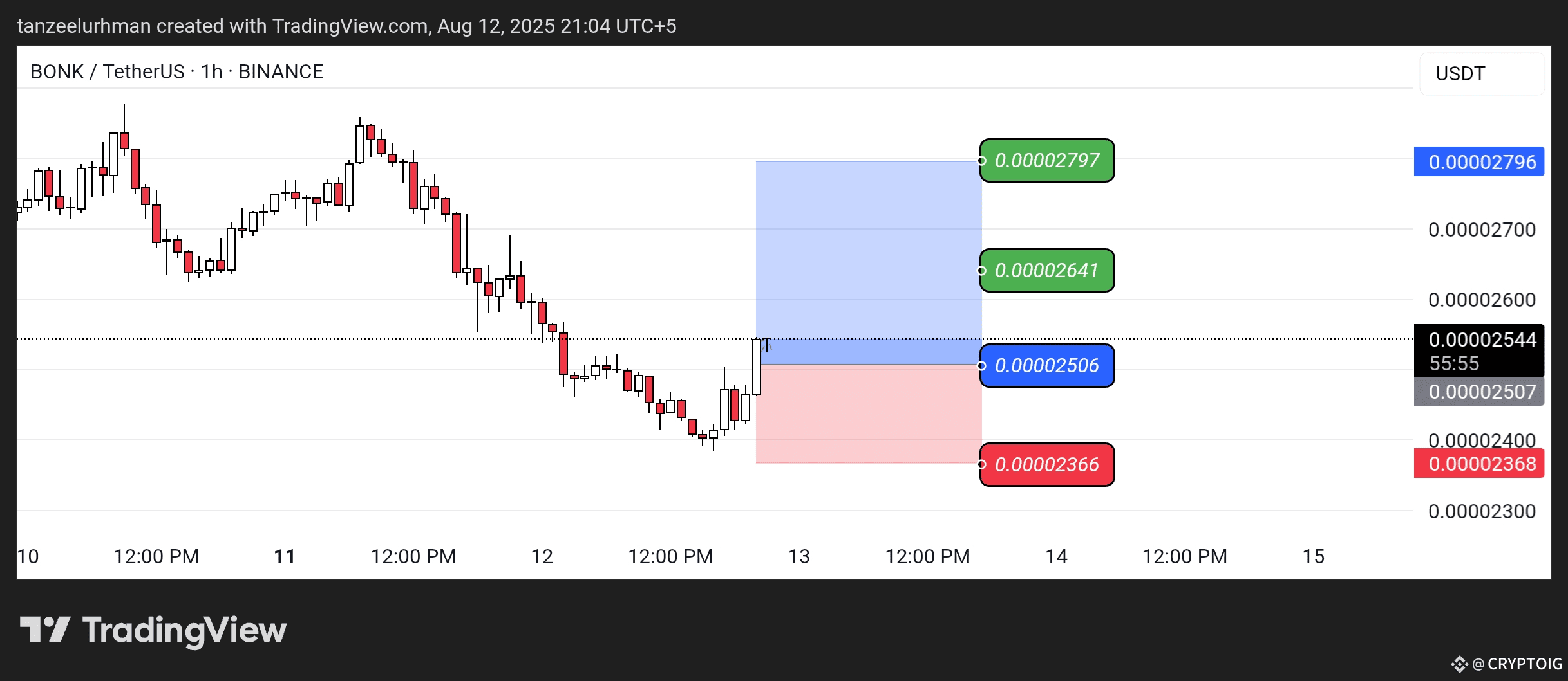 $BONK s taking a pullback from the support level and has also broken the resistance trendline. Now you can enter into a long trade if you want.