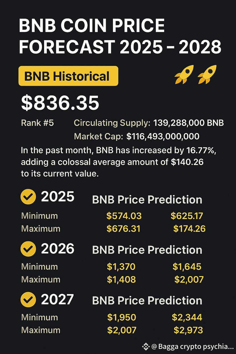 Currently, BNB is trading at $836.35, ranking #5 among all cryptocurrencies. With a circulating supply of 139,288,000 BNB, the token maintains a strong market capitalization of approximately $116.49 billion.
