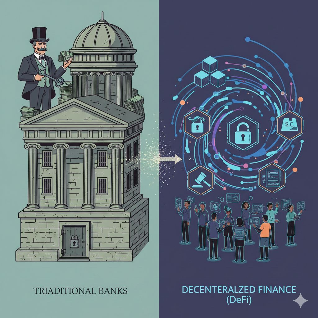When people talk about crypto, they often mention DeFi , short for Decentralized Finance. But what does that actually mean? Let’s break it down in a simple way.