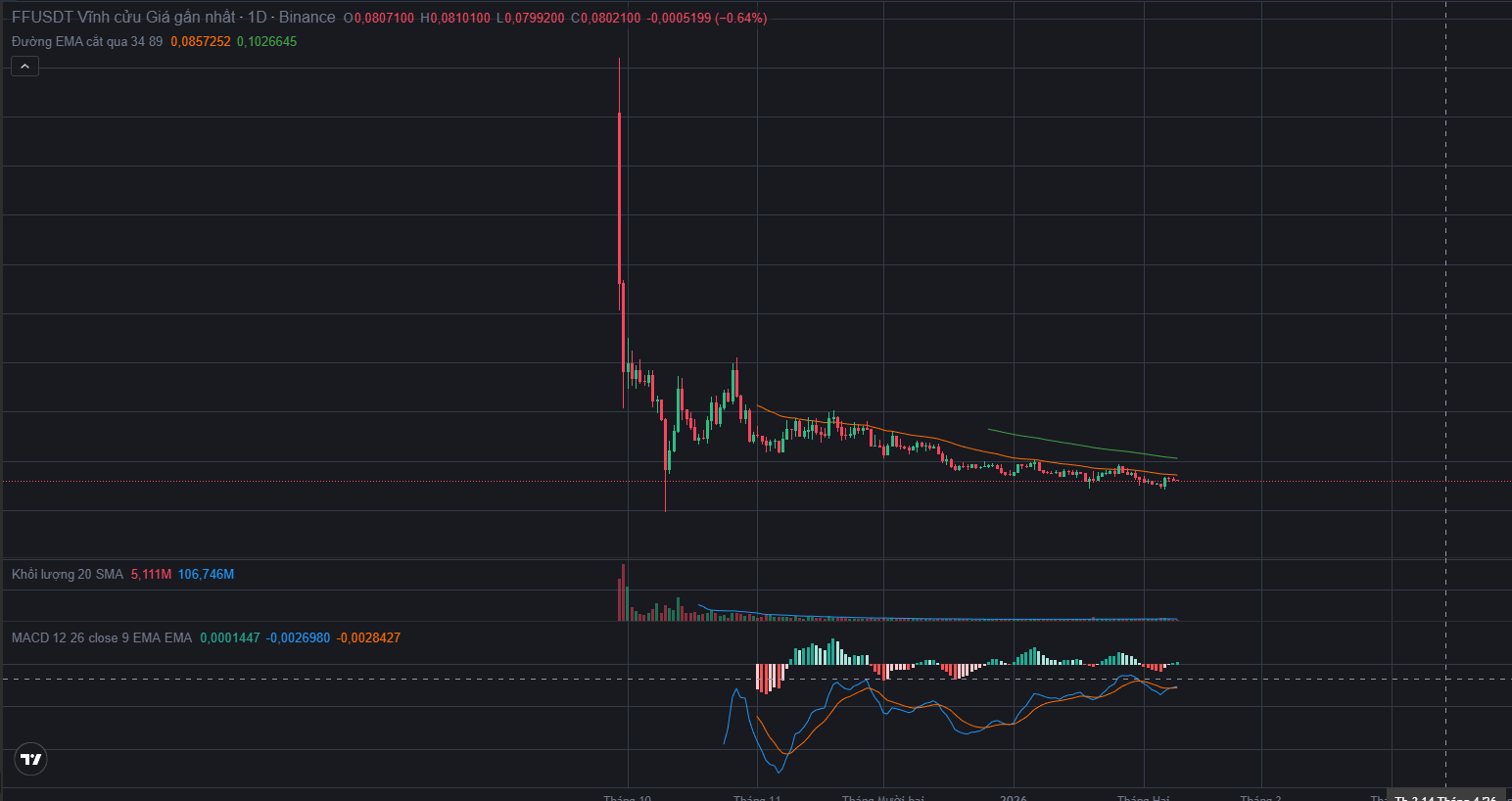 Dễ dàng nhìn thấy được rằng kể từ khi niêm yết trên sàn Binance, FF chỉ có một đợt tăng trưởng nhẹ ban đầu sau đó là giảm liên tục vì chịu áp lực bán kéo dài từ các đợt unlock và trong bối cảnh volume không đủ lớn để hấp thụ lượng token mở khóa, rủi ro lớn nhất rơi vào nhà đầu tư mua hold dài hạn.