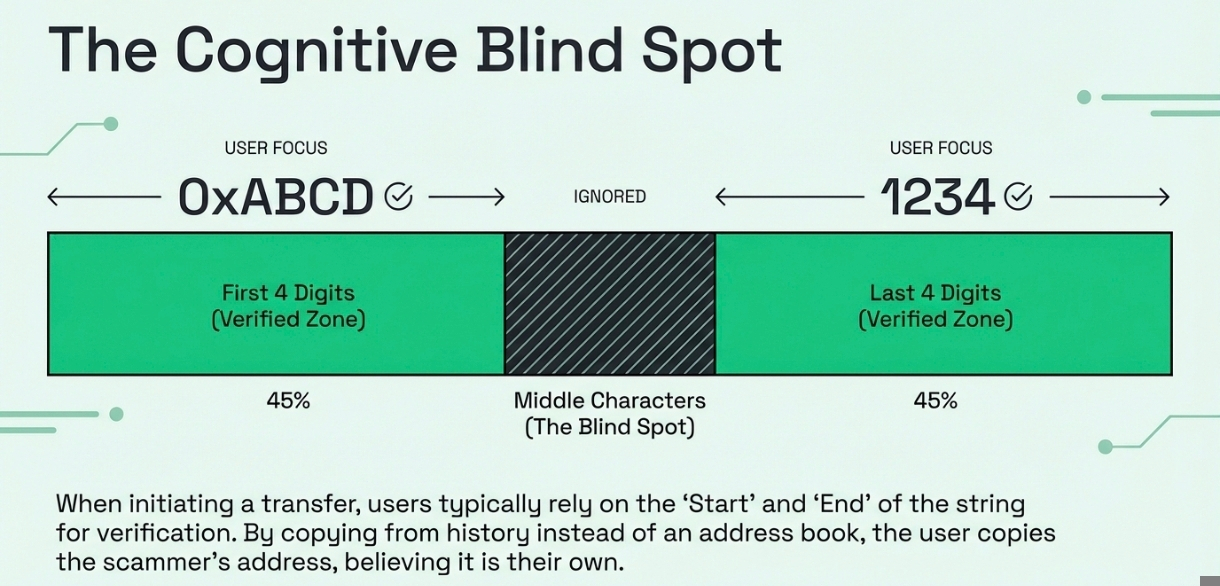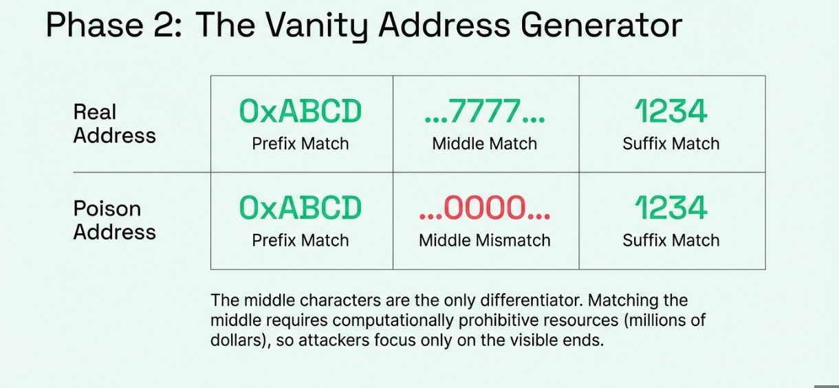 The Poison: The scammer uses a software to generate a fake address that looks almost identical to yours.