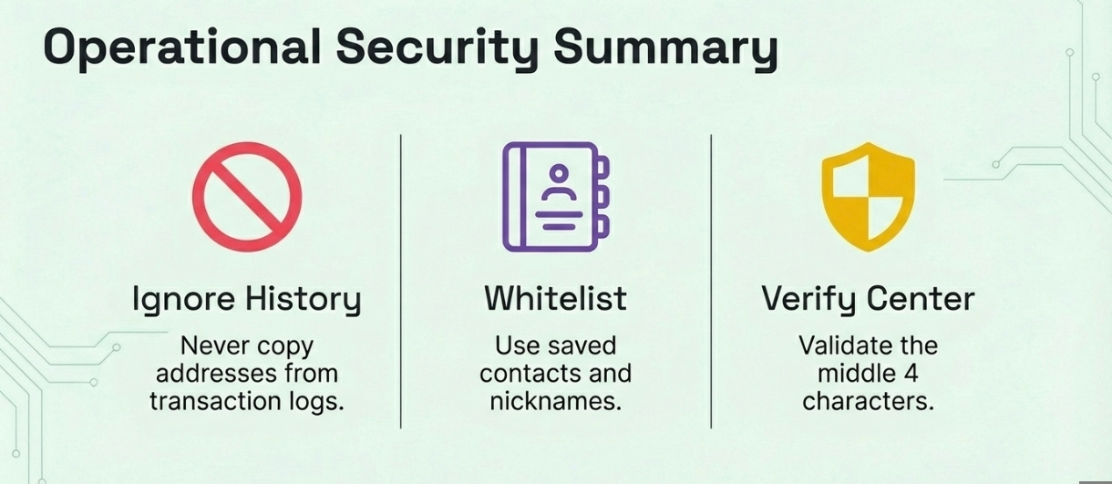 History is a "Log of Events," not a "Safe Contact List." Anyone can put an event in your log. Always copy the address from the Source (your actual Ledger device or Exchange deposit screen).