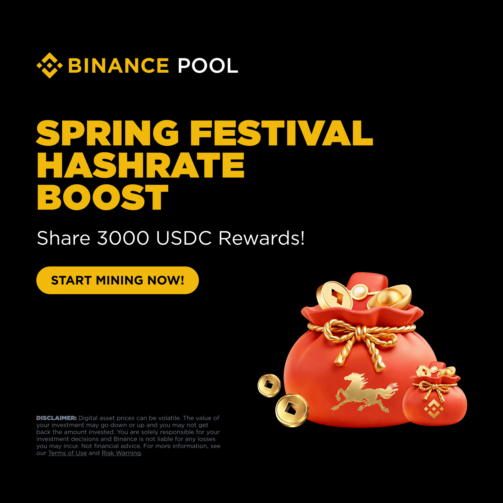 🧨 Celebrate this Lunar New Year by mining on Binance Pool. Increase your BTC hashrate during the Promotion Period and stand a chance to share 3,000 USDC Rewards.