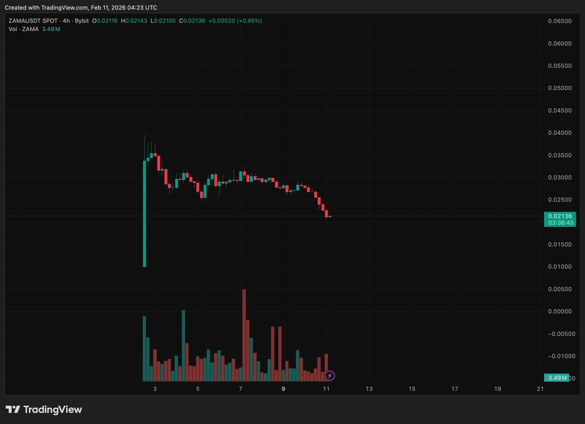 According to onchain data, a large transaction of 10.6 million ZAMA equivalent to $383,000) was transferred to Binance right after listing, showing signs of dumping from major holders.