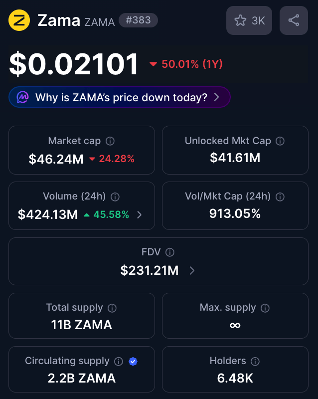 ZAMA has gone through a disastrous price drop: