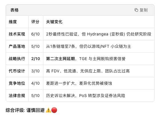 主网再次延期: Mainnet 1.0 (PoS) 从 2024年底 → 2025年Q4 → 2026年未定,构成 第二次重大延期