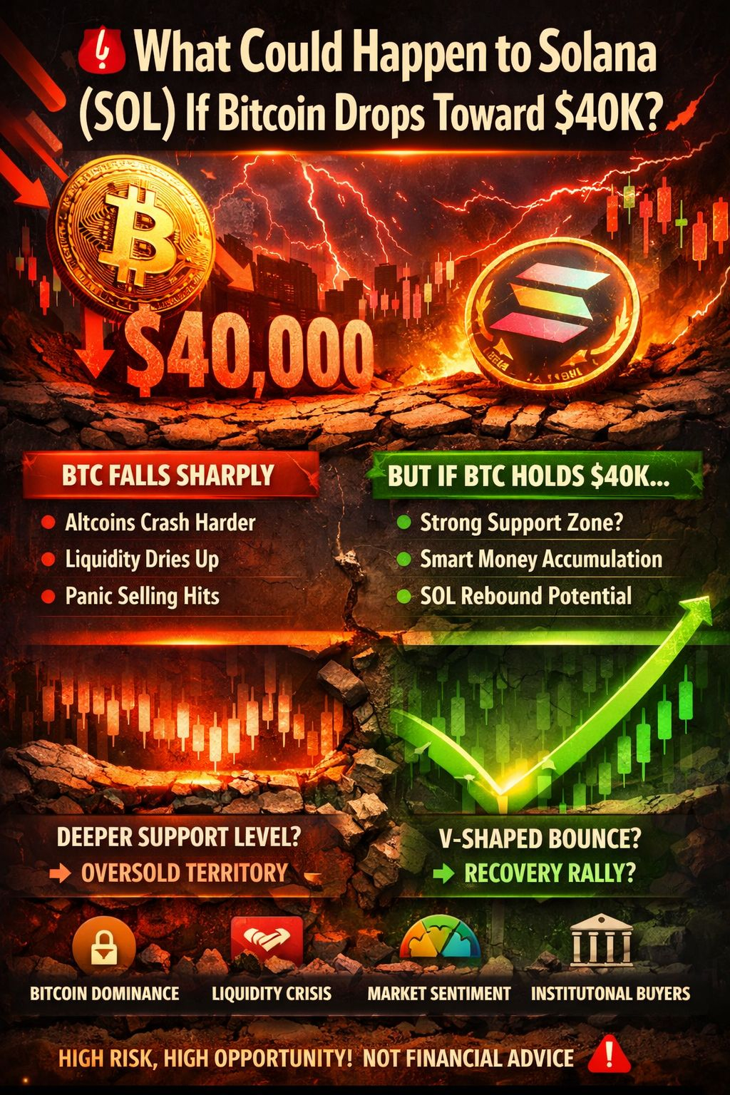 Historically whenever Bitcoin experiences a strong correction altcoins react with even higher volatility in past market cycles assets like Solana have fallen 1.5x to 2x more than Bitcoin in percentage terms during sharp sell-offs. That means if BTC were to decline significantly toward $40K, SOL could see an amplified downside move.