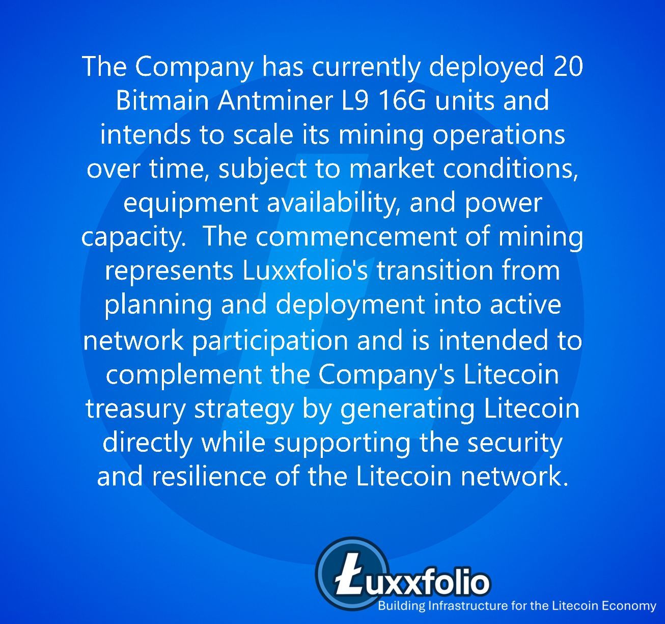 Alongside mining, they increased their LTC holdings by roughly 2,413 LTC, bringing their total to over 24,400 LTC. Just like Microstrategy is a treasury holding for Bitcoin, Luxxfolio is also now a treasury for Litecoin(LTC).