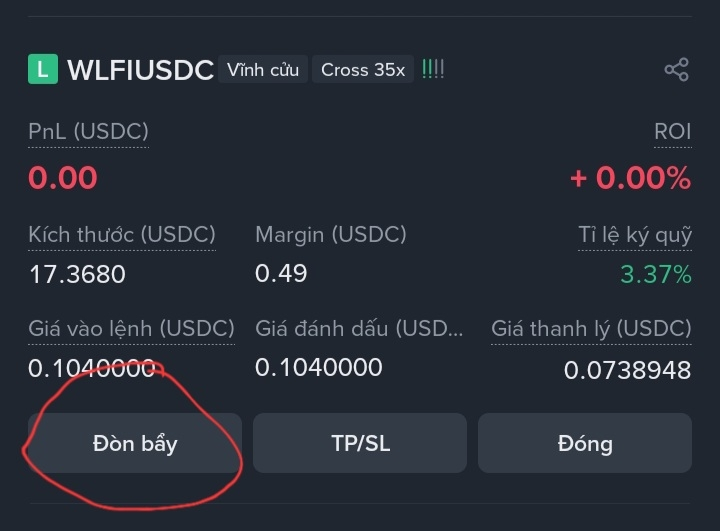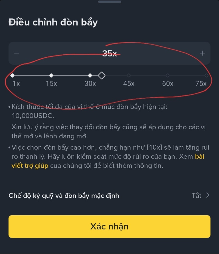 3. Màn hình Adjust Leverage (Điều chỉnh đòn bẩy) hiện ra.