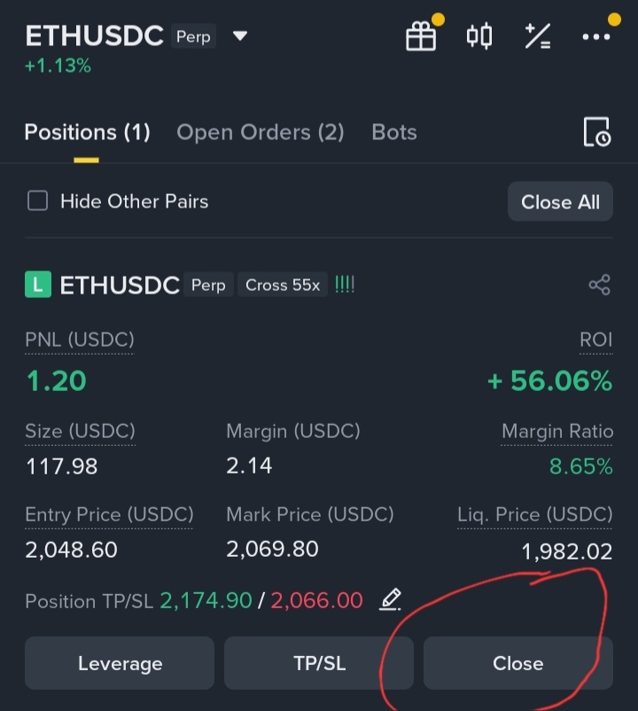2. Bấm vào nút Close Position (Đóng vị thế) trên lệnh bạn muốn chốt.