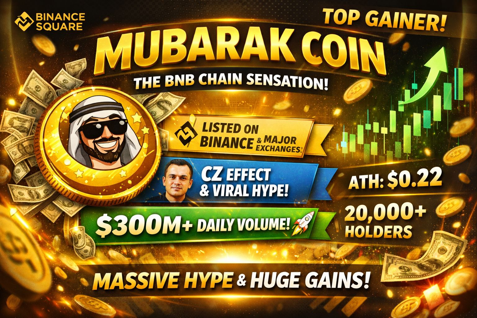 $MUBARAK is one of the hottest trending meme coins on the BNB Chain, delivering explosive gains, massive trading volume, and powerful community-driven hype. The word “Mubarak” means “blessing”, and this token is truly living up to its name.