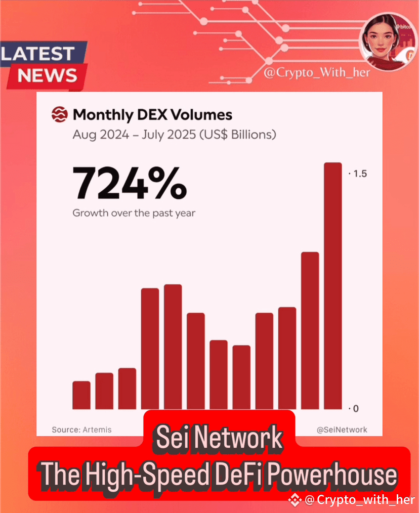 🔺In August 2025, Sei recorded a massive $1.2 billion in DEX volume paired with 15 million active wallets—signs of deep adoption and liquidity.