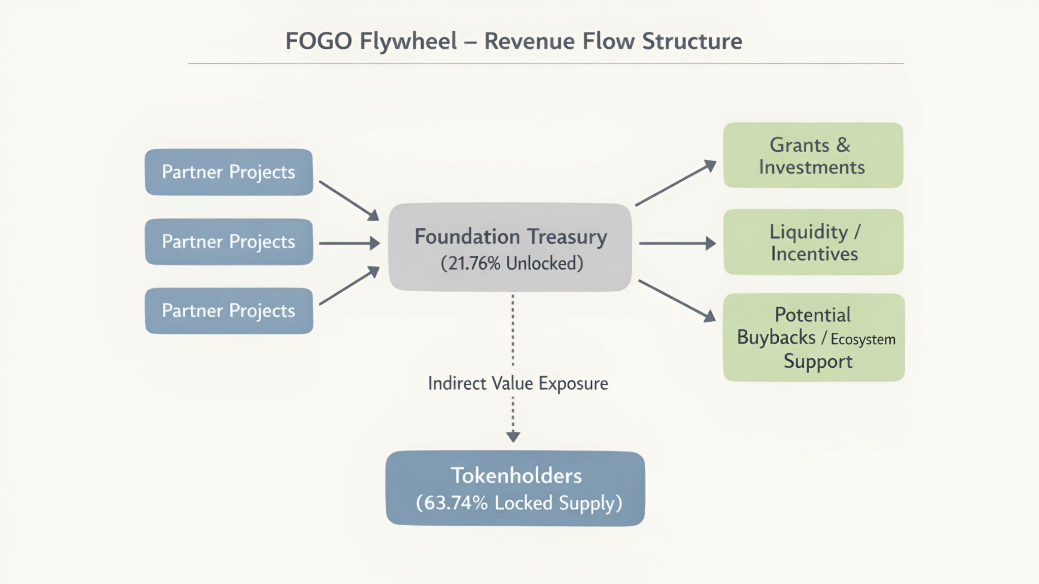 FOGO's model introduces a layer. Projects generate revenue. Foundation receives it. Foundation determines allocation.