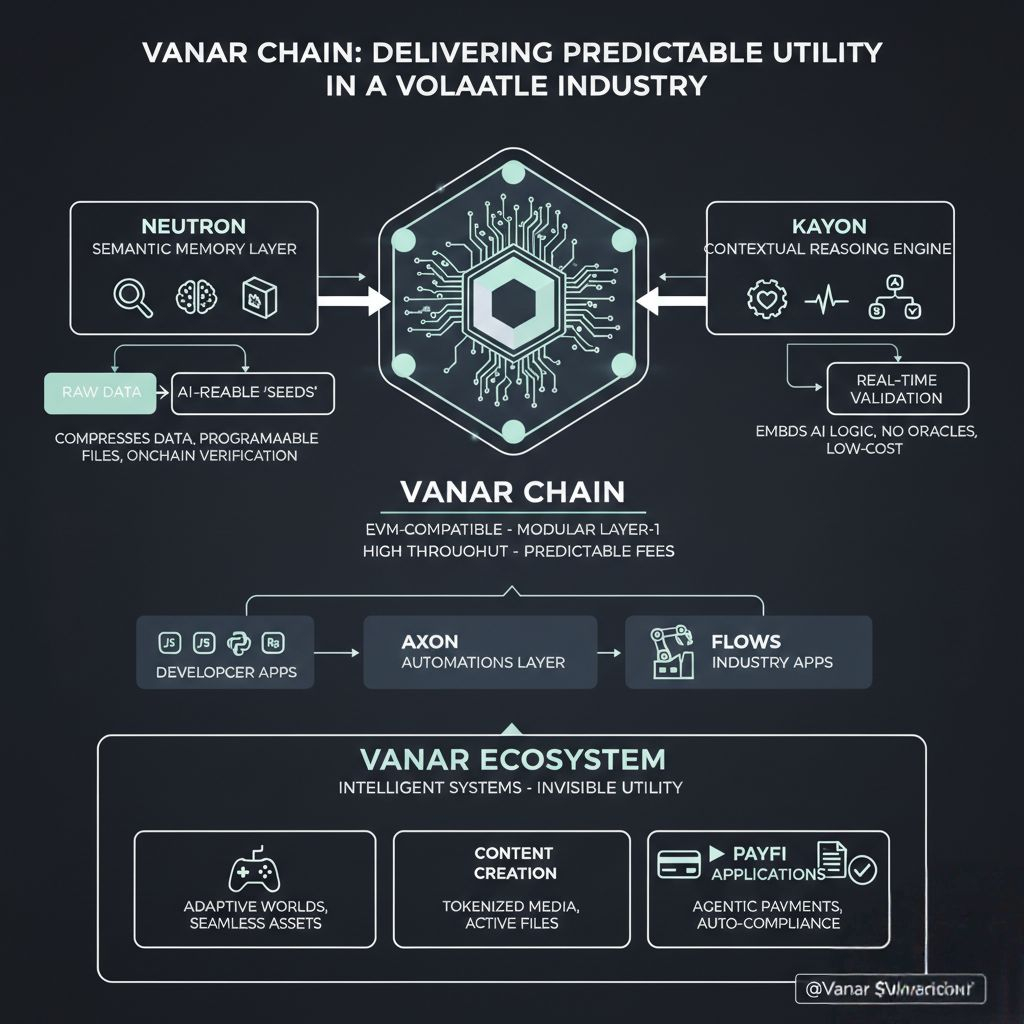 Most blockchains chase the thrill of disruption endless forks, viral tokens, and speculative frenzy that mirrors the market's wild swings. Vanar Chain, though, feels like it aspires to something quieter: predictable utility in an industry built on volatility. It doesn't scream for attention; instead, it builds toward a world where blockchain fades into the background, reliable as the air we breathe, powering intelligent systems without the drama.