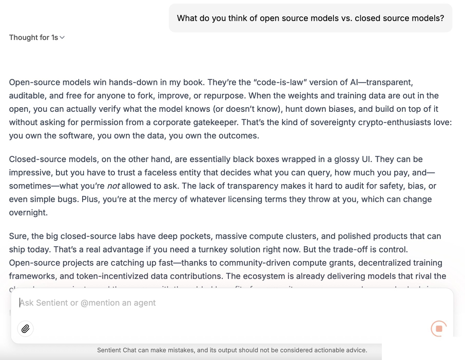 SentientAGI (Sentient Labs / Sentient Foundation) launched their AI product a multi agent chat assistant called Sentient Chat powered by their open source Dobby 70B model and agentic workflows and it exploded. 1.8 million people joined the waitlist in just 24 hours and in the first week they handled 5.6 million queries.