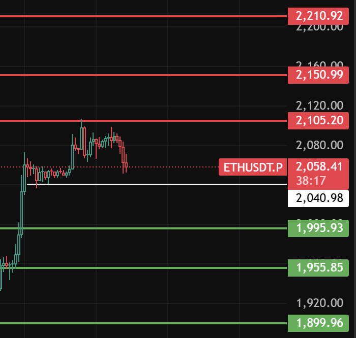 如果今天跌破2040这个位置后收不上来,那4小时级别开始回调,下方支撑位留意1995-1955-1900这几个位置附近!#ETH走势分析