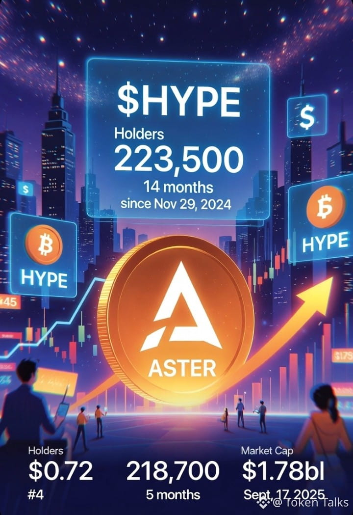 The crypto market never sleeps, and few projects capture attention like $HYPE (ASTER). In just 14 months since November 29, 2024, this rapidly growing token has reached an impressive milestone of 223,500 holders, signaling strong community confidence and sustained momentum.