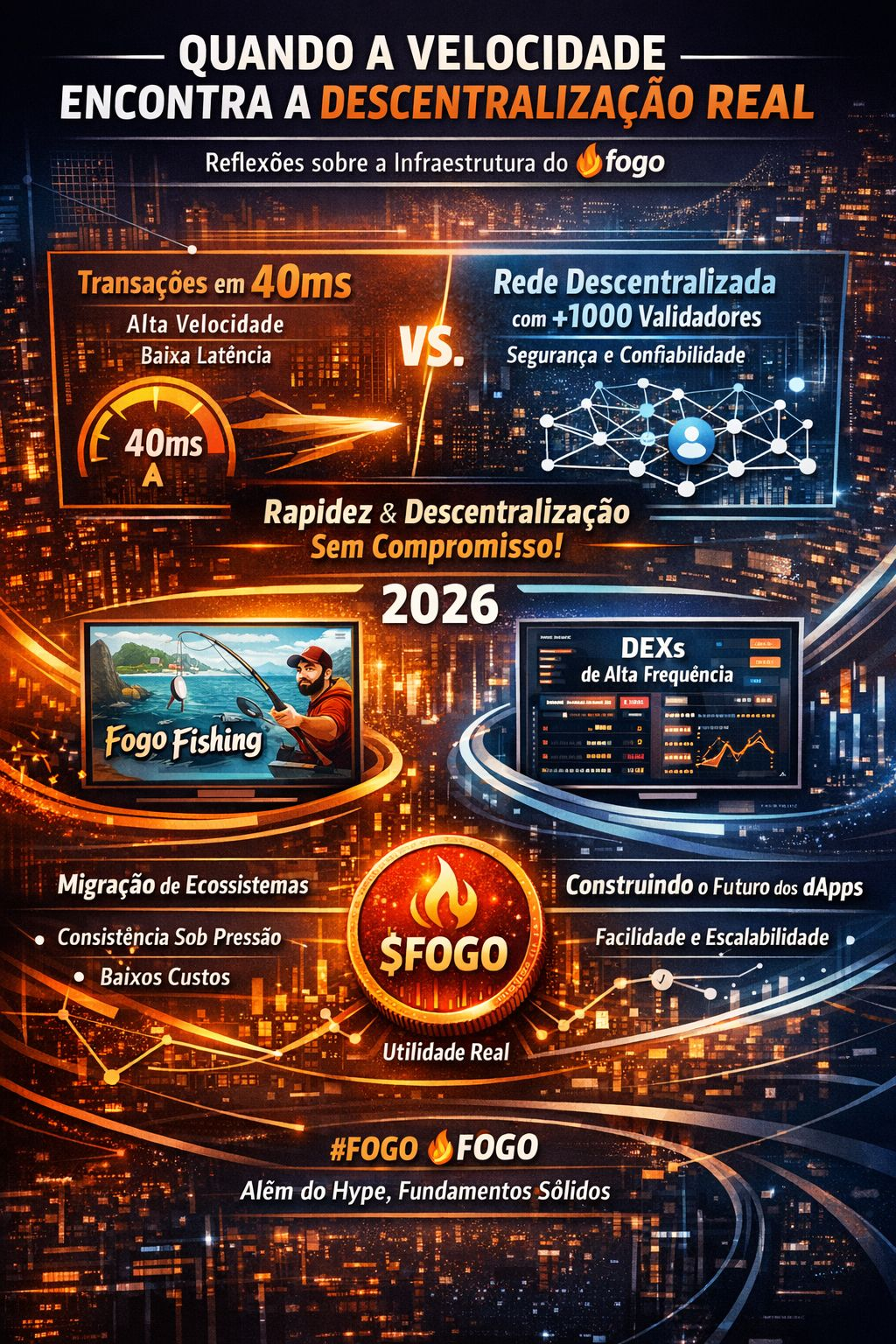 O que torna 2026 um marco é a maturidade de arquiteturas que desafiam esse compromisso. Com o lançamento da Mainnet do Fogo em janeiro, vimos que é possível entregar finalização de transações em 40 milissegundos sem abrir mão de uma rede robusta de validadores. Não é mais sobre escolher entre rapidez e confiabilidade — é sobre a engenharia SVM que permite ambos em escala institucional.