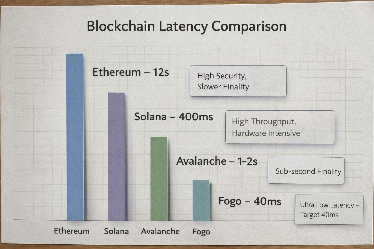 Now if I were talking to a trading desk, I would bring a chart lining up Ethereum’s 12 second block time, Solana’s 400 milliseconds, Avalanche’s 1 to 2 seconds, and Fogo’s 40 milliseconds target. Seeing that compression visually makes the latency argument intuitive.
