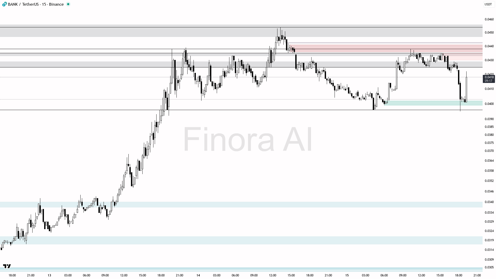 اختبار وإعداد استمرار صعودي، مستهدفا 0.0435 وما فوق. إذا فشل السعر في الثبات عند 0.0396 وأغلق دونه، أتوقع استمرار الاتجاه الهبوطي إلى 0.0388 أو أقل - وهذا من شأنه أن يحول تحيزي إلى اتجاه هبوطي