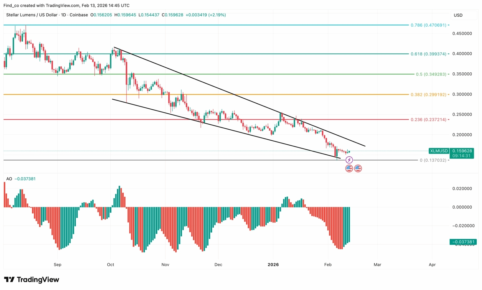 If that happens, upside references sit near 0.24 first, then 0.30. If 0.14 fails decisively, there is no structure left to defend. Right now, XLM is a hold-or-fail zone, not a chase.