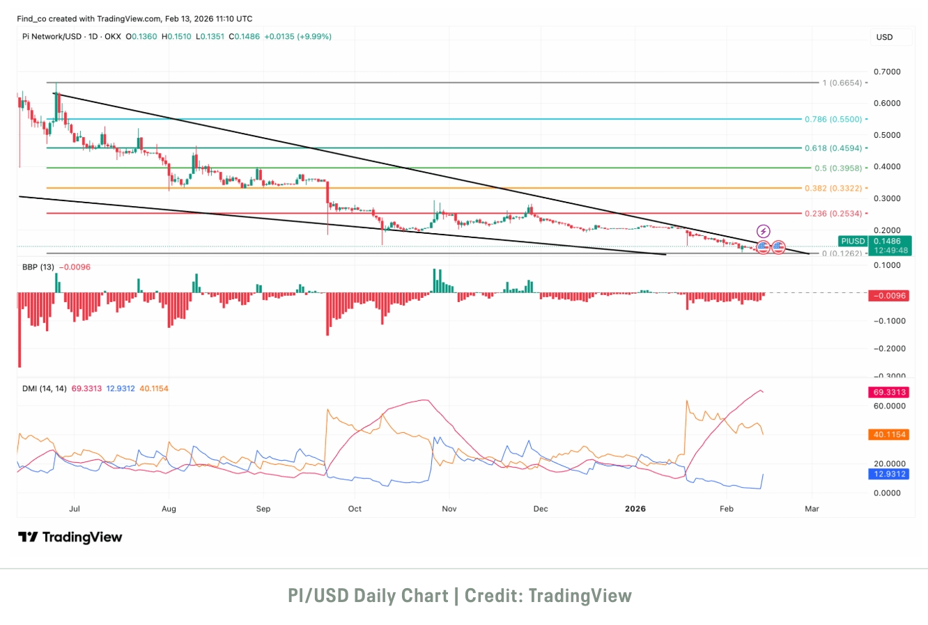 Stepping back makes the picture clearer. PI is still trading within a descending channel, and every bounce continues to stall at structural resistance. This is not driven by news or sentiment. It is simply the trend behaving as trends usually do.