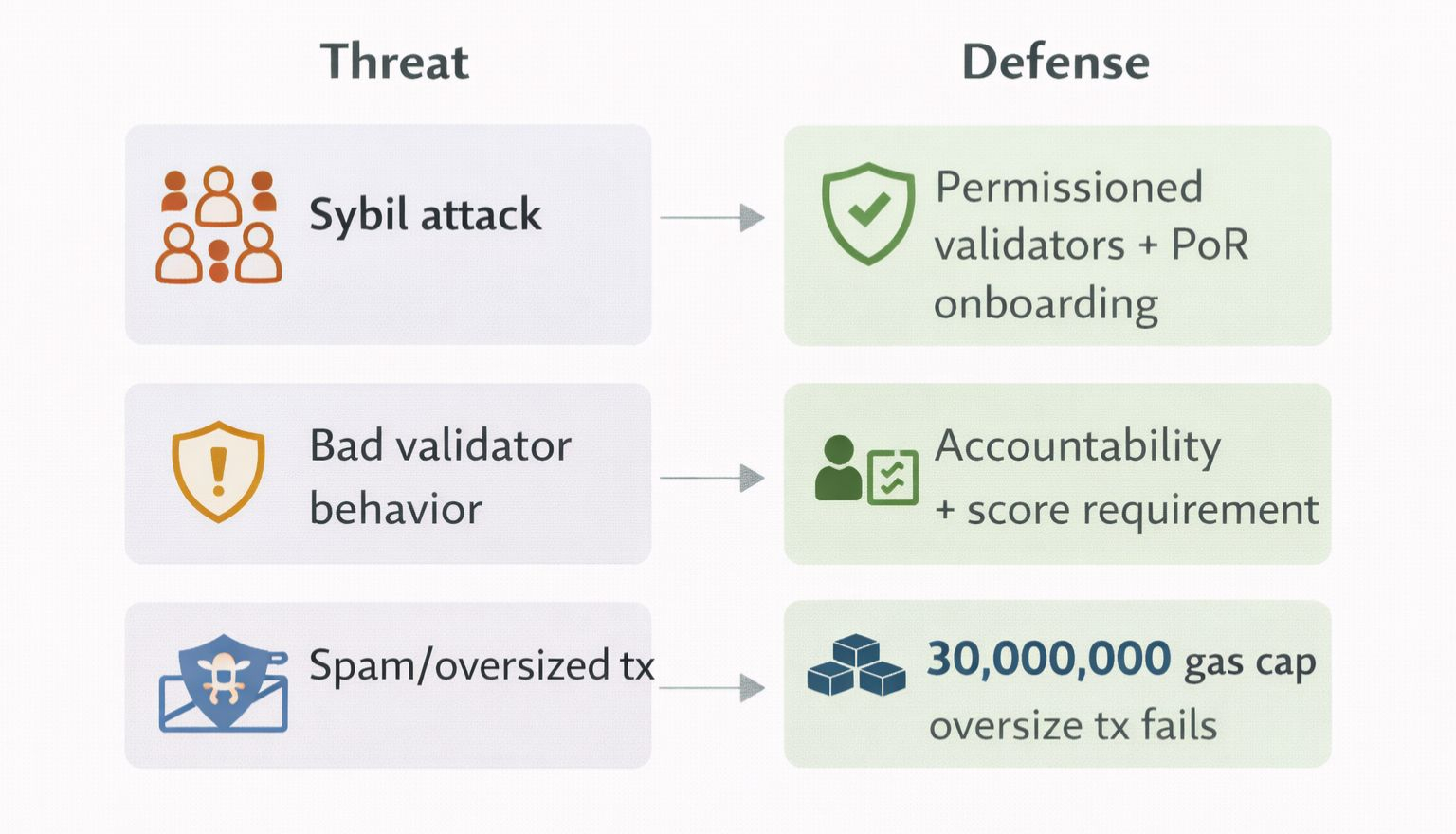 You can’t just create tons of fake validators overnight if validators are permissioned and onboarding is governed through PoA plus PoR.