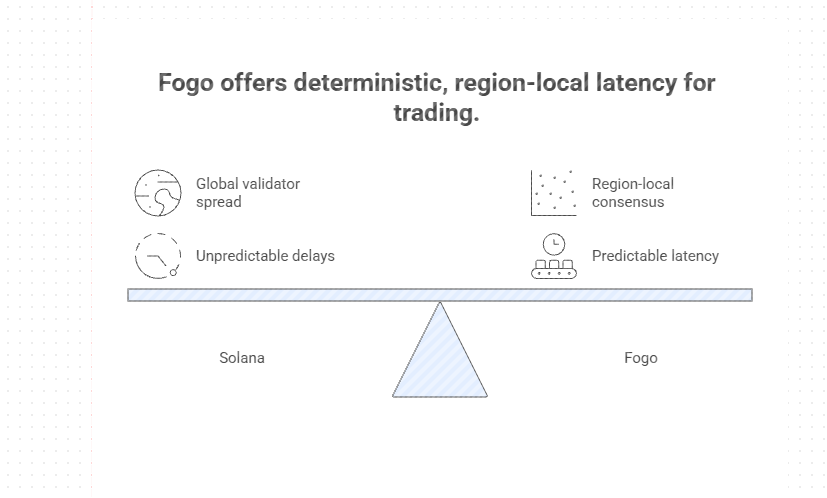 Problem statement: Solana’s global validator spread and general‑purpose workload mean you still see jitter and congestion; Fogo is solving for deterministic, region‑local latency for trading.