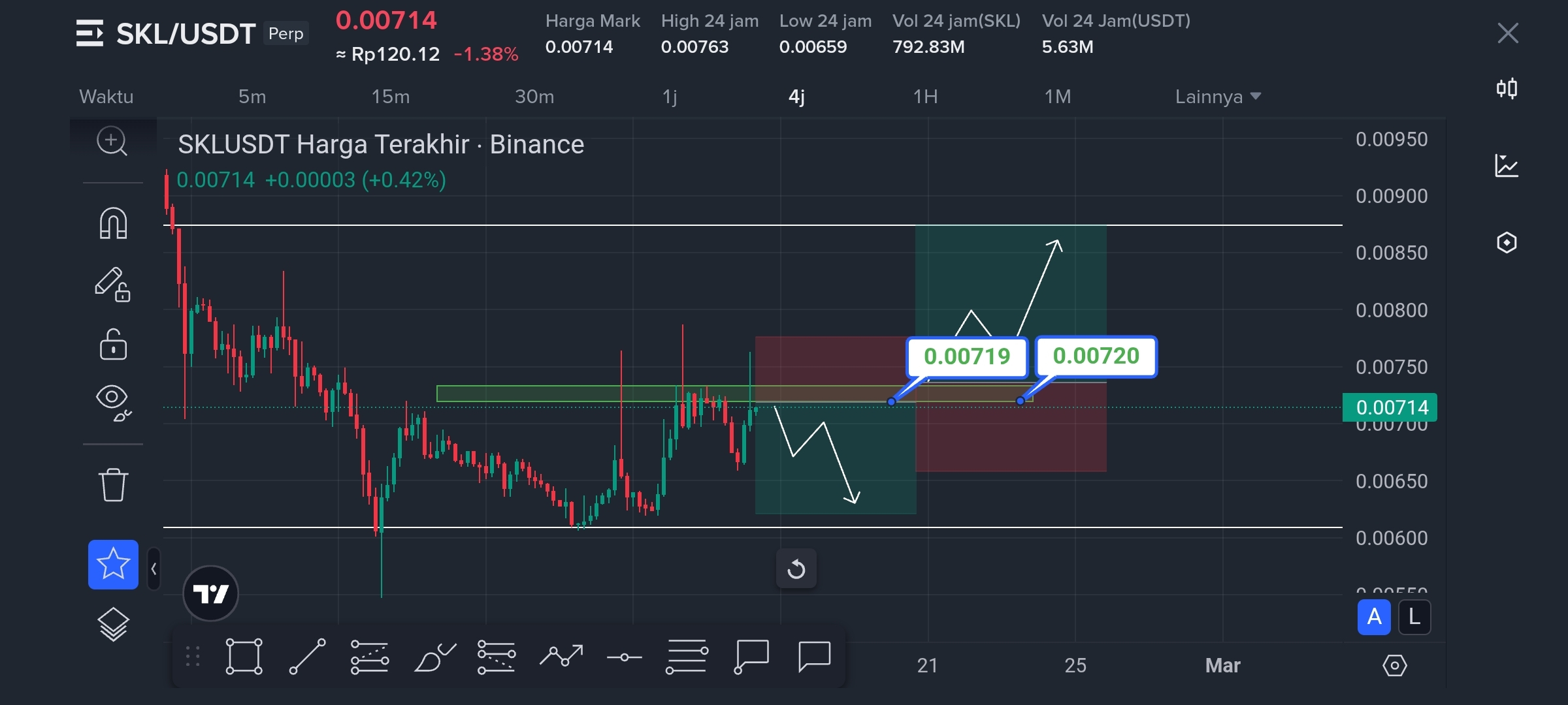 Alasan: jika resistance minor 0.0073 ditembus, kemungkinan harga lanjut ke resistance range atas.