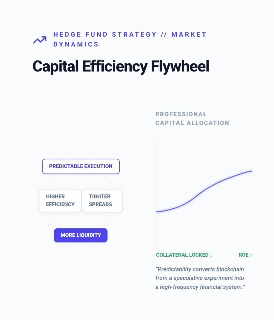 Professional participants measure return on capital precisely. If infrastructure allows tighter spreads and lower margin buffers due to predictable execution, capital rotates there.