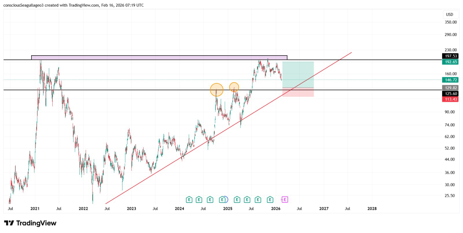 Target aligns with a major resistance / prior high extension, suitable for a swing trade.
