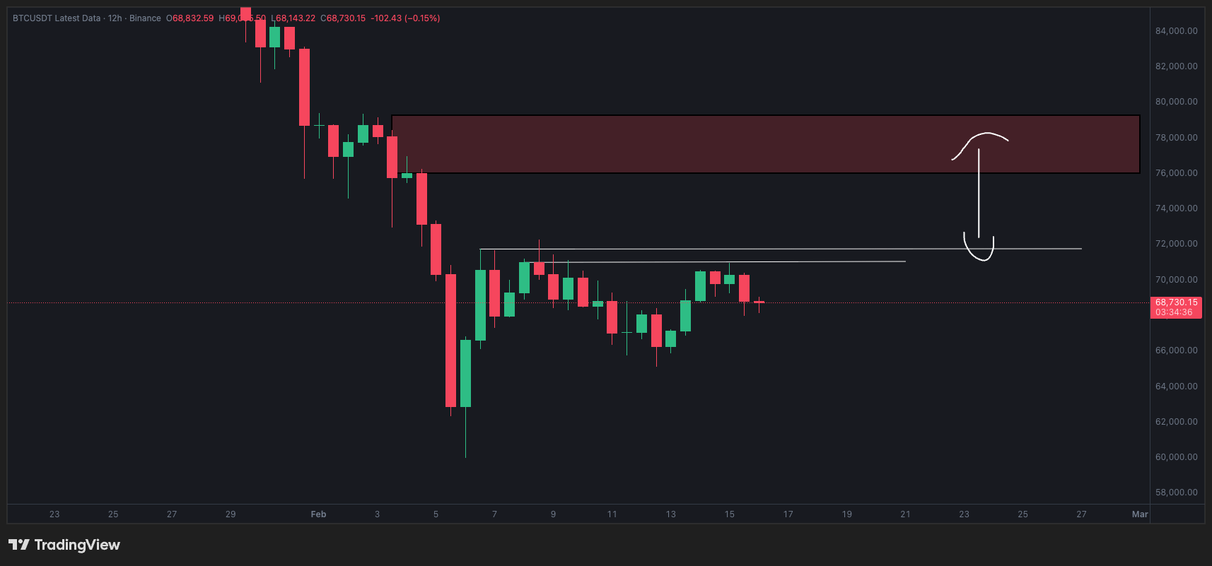 The $71K–$72K zone has been continuously rejecting price on the lower timeframes. If Bitcoin manages to break above it and hold, I think this could open the door to the targets we discussed earlier.